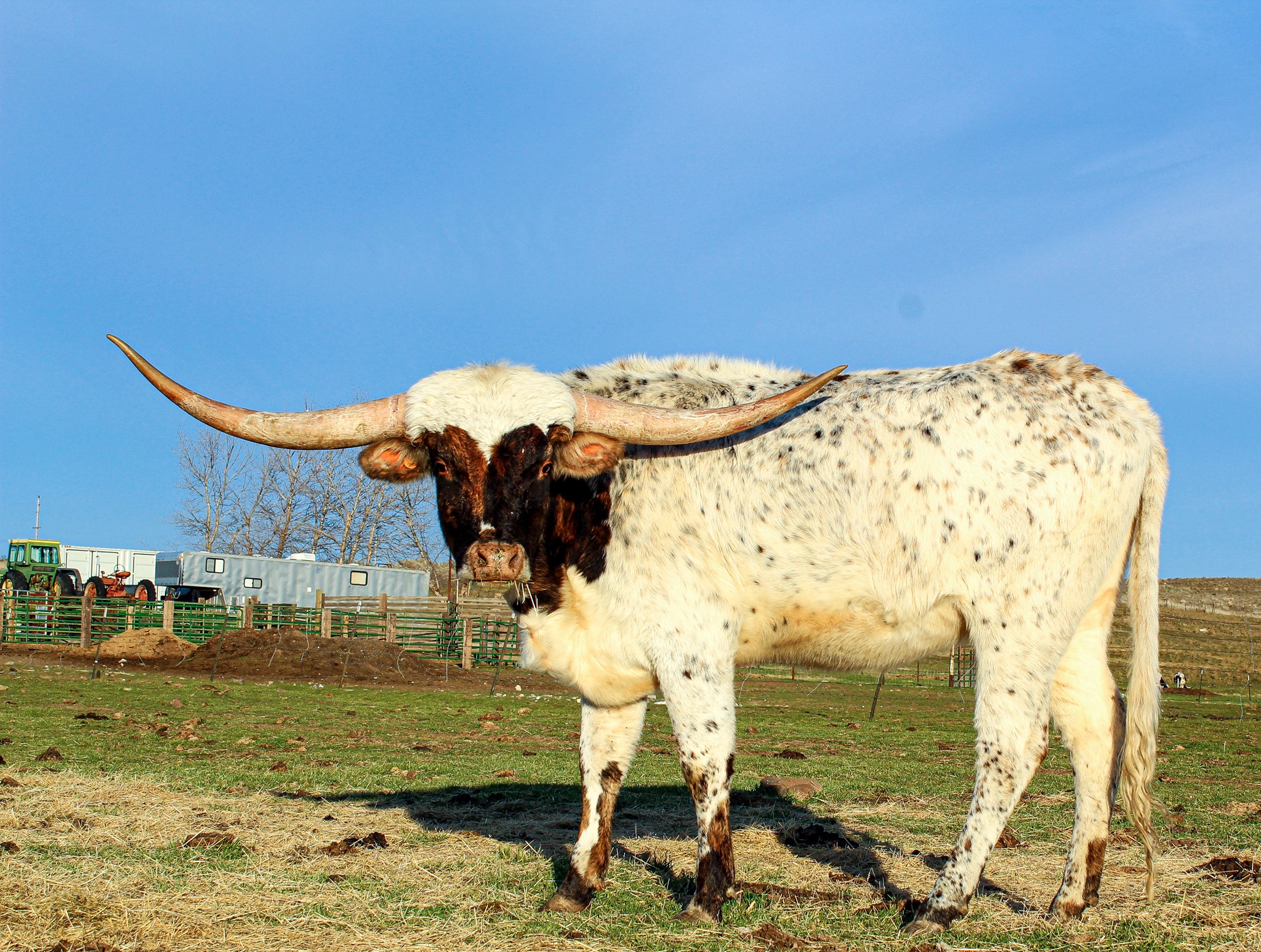 High Bred Heifer with Awesome Pedigree. Dam is a Huge Horned Great Milking Cow out of the horn producing "Choice Iron" sired by Drag Iron. On the Top you have "Bwana Chex", "Helm Missy", "Drag Iron", "BL Safari Sue" "Cowboy Tuff Chex" and "D/O Miss Grande". This girl is built right with great lateral horn direction and color loaded. Has not been exposed and ready to breed a fresh 2 year old in the summer of 2025. Great opportunity on a beautiful heifer.